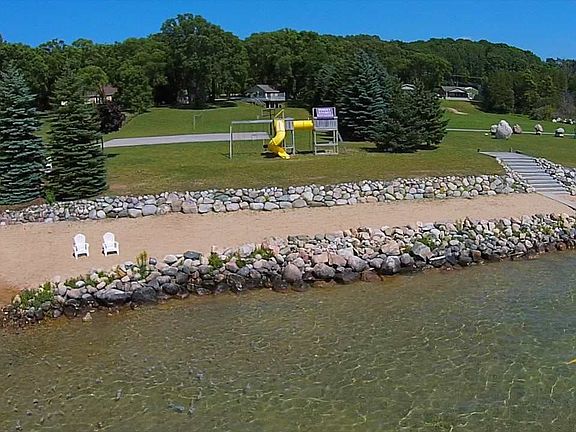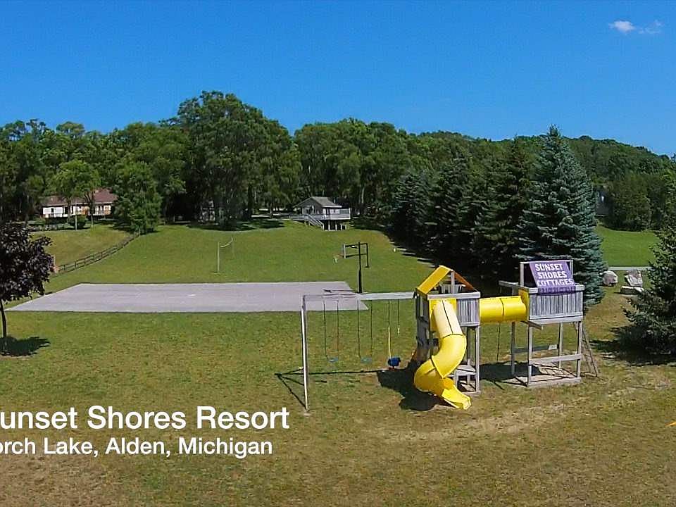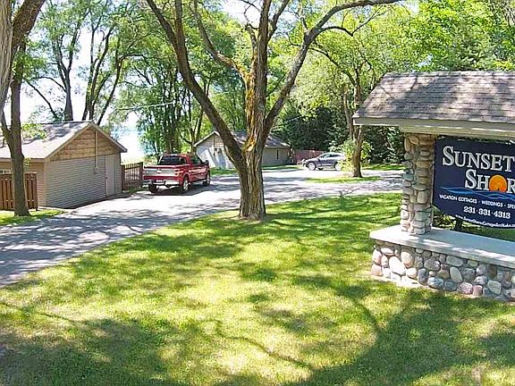 Sunset Shores on Torch Lake. Rare opportunity with 3 cottages on sugar sand beach with rental income. COTTAGE 1 - 2-bedroom, 1-bath. COTTAGE 2 - 2-bedroom, 1-bath upstairs and a studio apartment in lower level. COTTAGE 3 - 2-bedroom, 2-bath. All units are nicely decorated and furnished. The property has lots of room with a basketball court and children's play area and includes a shared dock.