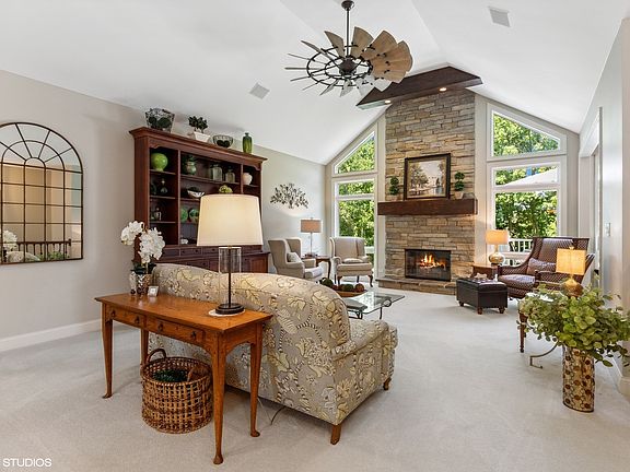 Welcome to this extraordinary, semi-custom Barrington II KLM Ranch home nestled in the sought-after picturesque Preserves neighborhood. Be prepared to be awestruck by this magnificent property as soon as you lay your eyes on it. This outstanding home will have you captivated by its impeccable beauty and stunning architectural design. The exterior boasts a classic brick facade that exudes timeless elegance, showcasing the impeccable craftmanship that went into creating this masterpiece. Situated on 1.2 acres of lush mature trees, this property offers an unparalleled level of privacy and tranquility. Once inside, you will be greeted by an open and spacious floor plan, filled with an abundance of natural light cascading through the large windows on each side of the stunning floor to ceiling brick fireplace and vaulted ceilings in the great room. The attention to detail is evident throughout, with high-end finishes and luxurious features that showcase the home's craftmanship including hardwood floors and 6-panel doors, elegant crown molding in the formal extended dining room, wainscoting, gorgeous wood beams, custom drapery and tasteful wallpaper and color palette. The heart of the home is the gourmet kitchen, adorned with beautiful custom cabinetry, granite countertops and backsplash, under cabinet lighting, New SS appliances including double oven and large peninsula island. Perfect for hosting family gatherings or entertaining friends, the kitchen seamlessly flows into the expansive great room and breakfast room as well as the bright and cherry sunroom which is an awesome place to enjoy a cup of coffee, read and enjoy views of the gorgeous yard. Right off the sunroom is the large composite deck with dual staircases leading to the backyard oasis. The den is separated by beautiful glass French doors, and is a cozy space for relaxing, the elegant custom built-in cabinetry is ideal for storage. After a long day it is a pleasure to retreat to your own extended private sanctuary in the magnificent primary suite that looks out into the backyard, complete with a luxurious En-suite bathroom featuring a spa-like jetted tub, skylight, separate shower, double vanities and extra-large walk-in closet with closet organizing system. The additional bedrooms located on the other end of the home are large and luminous, ensuring comfort for everyone. Step downstairs to the gorgeous finished walk-out basement and enjoy another 2,000 plus SQFT of living space. The beautiful 2nd kitchen has granite countertops, stove, dishwasher, sink and mini-fridge as well as large island which is great for entertaining. The lower-level family room is large, featuring a 2nd brick fireplace as well as a recreational space perfect for playing a game of pool and spending time with friends. The additional 4th bedroom is right around the corner and next door to the full 3rd bath. The extra-large office has glass French doors and custom built-in cabinetry, views of the backyard make working fun in this space. The workshop could inspire even the most challenged carpenter to build something spectacular and the additional storage area is convenient. The glass doors lead out to the extraordinary backyard and patio which is awesome for hosting a summer BBQ. This stunning finished walk-out basement is ideal for an in-law/nanny arrangement. Lastly, the side load, drywalled 3 1/2 car garage is an awesome space to store all your toys and work on projects. Some of the recent updates include: 2022-HVAC replaced, 2021-professional landscaping, 2019-remodeled kitchen, great room, hallway, lighting, new SS appliances, central vac system, refinished HW floors/6-panel doors, 2018-new roof, paint, wallpaper, composite decking and additional stairs on deck, primary bathroom remodel, powder room remodel. Don't miss this incredible opportunity to own a truly magnificent home!