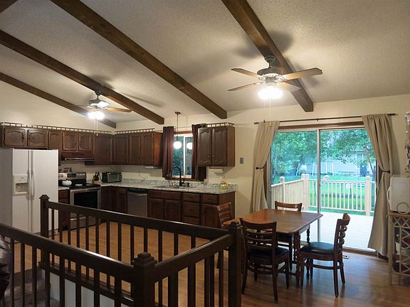 Maize Schools and NO Specials! Seller has gone to a lot of work to get this home ready to sell. New siding/ fresh exterior paint/ new windows on back of house (and vinyl windows in basement)/ New wood deck/ Carpet on main floor/ New bathroom vanities and fixtures. Fenced yard. Main floor features an open floorplan with a vaulted ceiling and fireplace in the main floor living room. Open kitchen/ dining room with wood laminate floors. Three bedrooms and two bathrooms on the main floor. Basement features a large family room, an office with egress window (no closet), and a third full bathroom. Large storage space!