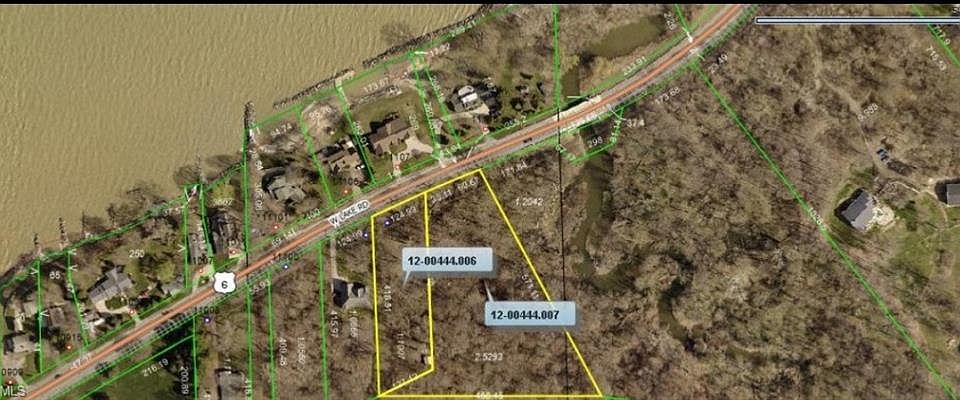 Two parcels totaling 3.63 acres of partially wooded land situated along a beautiful stretch of W Lake Rd. (US RT 6) in Vermilion Township. The Western side of the property is elevated above the roadway where views of Lake Erie and Sugar Creek can be seen. The natural terrain change of the lot could be used to accommodate a walk-out basement. Various species of trees growing on the lot, including Apple trees are producing. Lot has been prepped for home construction. Work Completed: Hillside graded and first 150' of driveway base has been installed. Approximately 1.5 acres have been partially cleared. Soil test completed (Mound system approved). Septic designs completed for both 3 and 4 Bedroom homes. (Homesite will have to be situated at a similar location that was originally planned.) Pole installed by Ohio Edison and prepped for electric service. Parcel 12-00444.006: 1.1007 Acres Parcel 12-00444.007: 2.5293 Acres (per Erie County Auditor).