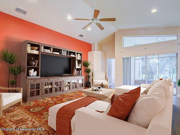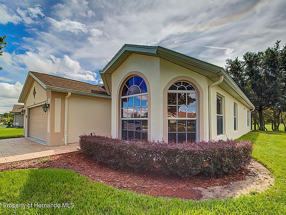 MOTIVATED SELLER offering $3,000 toward closing costs or repairs. Enjoy this beautiful and SPACIOUS 3/2/2 Bluebird Ryland model that is located in the upscale 55+ Wellington at Seven Hills. This gated community has a 24-hour guard, nice landscaping, bar and grill, community pool, tennis courts, pickleball and many other amenities. When you come in through the front door there is a foyer that opens up into the formal living room and dining room. As you walk into the kitchen area you will enjoy all the wood kitchen cabinets and counter space with a nice size breakfast nook. The family room is a great size and leads into the large, covered lanai. The master bedroom has a walk-in closet with a private bathroom, a walk-in shower, dual sinks & a garden tub. Two spacious guest rooms which share a full guest bathroom. Enjoy the enclosed large lanai. The laundry room has a sink and cabinets. HOA will be replacing the roof in 2027. The exterior of the home is scheduled to be painted soon and the new owners will be able to choose the color. Air conditioner 2017. Some pictures are staged. This is a repaired sinkhole home. Engineering reports are available. COME AND SEE!