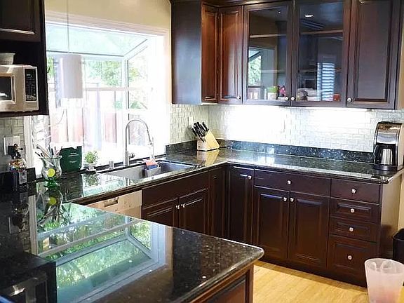 Home includes hardwood and bamboo floors, crown molding, double-paned windows, custom windows blinds, driveway and backyard pavers, easy-maintenance yard, new carpeting, new paint, and much more. Double wide front doors open to very high vaulted ceilings in Living Room and Dining Room and gives an open airy feel. Excellent layout in kitchen overlooking Family Room with an eat-in breakfast bar. Top-of-the-line stainless steel GE Cafe & Miele appliances, granite counter tops, custom cabinets, recessed lighting, and more. A large bay window in kitchen lets in lots of light. Besides the formal Dining room, there is an informal eating area in between the kitchen and Family room perfect for the family. Full size 2-car garage with lots of storage space. Just a few minutes walk to Farragut Park and the new Beach Park Elementary School. Backyard is great for gardening and already has a few fruit trees. Easy care drought-resistant yard. A great house in a safe and convenient location of Foster City. Don't miss this one!