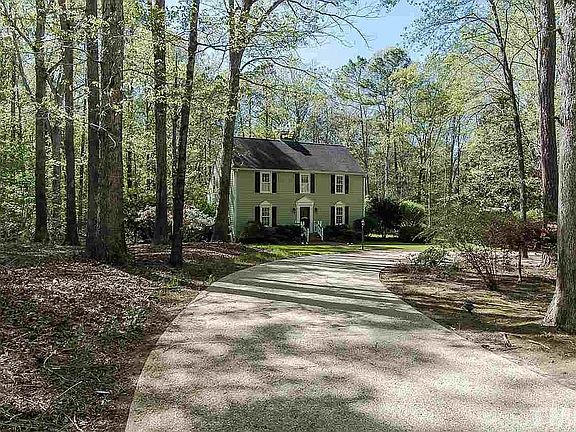 BEAUTIFUL, comfortable modernized SaltBox Colonial on a Serene Country Wooded setting on OVER 2 Acres w/ finished BASEMENT! Gorgeous home w/hardwood floors throughout 1st floor, BRIGHT Spacious Kitchen, remodeled 2021: quartz countertops, farmhouse cast iron main & prep sinks, champagne metaled hardwares, sleek cabinetry & appliances! 1st Floor offers Family Rm w/ brick has FP (convertible to wood burning),Private Office, Dining Room & Living Room. 2nd Fl. Boasts Master Bedroom, 2 Bedrooms Rooms, Full Bath + Loft Area. Concrete-Finished Basement w/Bonus Room, Addl Flex Space +Fireplace, Full Bath & Big Storage/Wall-in Closet. Brand new roof 2021. Exterior Boasts Wooded Scenery with Large Deck, Patio, Shed and Circular Drive! Minutes Away to Shopping/540/Restaurants, Leesville/Private schools, 16 mins to Downtown Raleigh.