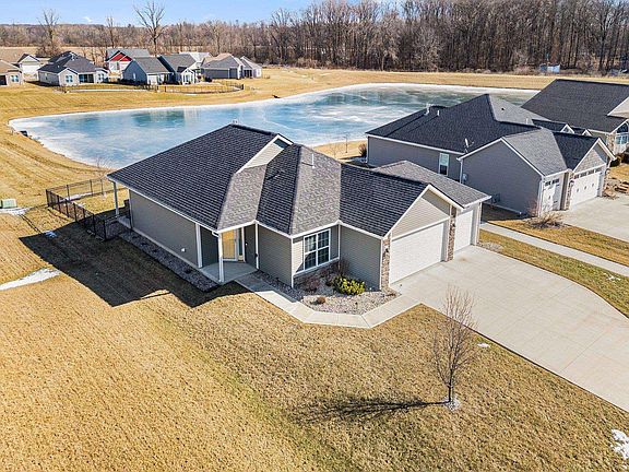 Discover your perfect home with this charming & well-maintained 3 bedroom ranch, situated on a peaceful cul-de-sac lot overlooking a beautiful pond in Homestead Schools! Step inside through the welcoming foyer & instantly feel at home with the spacious open concept layout. The kitchen is a delight, featuring a pantry, abundant countertop space & cabinet storage + all appliances are included for your convenience. This great space flows into the cozy breakfast nook & then into the expansive living area, highlighted by a stunning corner stone fireplace & a large sliding door that allows for daylight to pour through the home. The primary bedroom is privately located in the back of home with wonderful back yard views & offers a private en-suite bathroom complete with a walk-in closet, dual vanities, & a stand up shower. Two additional guest bedrooms provide plenty of versatility, perfect for home offices or flexible spaces to suit your needs. Step outside to relax under the covered patio, where you can unwind in the hot tub while enjoying the pond views. The fully fenced yard is ideal for children & pets to roam freely, giving you peace of mind! With a spacious 3 car garage, there’s ample storage for vehicles, lawn equipment, & more. Don’t miss out on this low maintenance ranch in Homestead Schools!