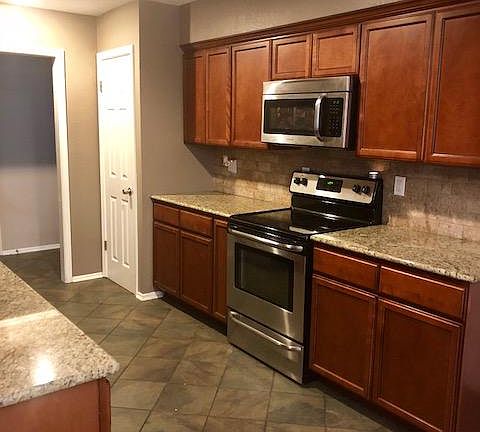 Granite counters. There is a basement. There is not a fenced in backyard.