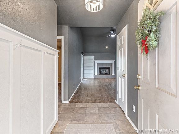 This beautiful home features a split bedroom floor plan with a 2-car garage and a spacious back yard that is a blank canvas for your entertaining dreams. Walking into the home, you will notice the beautiful entry that leads you to a grand living room complete with a gas fireplace for the cold winter nights. The kitchen offers plenty of cabinet storage, lots of natural light, an eat-in breakfast nook, and all appliances. The Kitchen is newly updated with Stretta countertops, new cabinet hardware, and a matching Black Granite sink & Gooseneck faucet. The master bedroom has plenty of room for a King size bed and it offers a cozy corner with built in shelves. Relax in the deep soaker tub in the Master Bath and enjoy matching his & her closets! Conveniently located just outside the hustle and bustle of Owasso’s business district, this home is tucked away in a quiet neighborhood close to schools, parks, and shopping! Agent is related to seller.