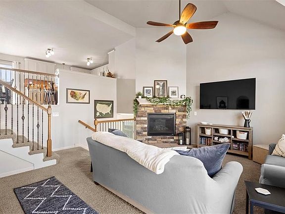 - Features: Carpet, Ceiling Fan(s), Fireplace