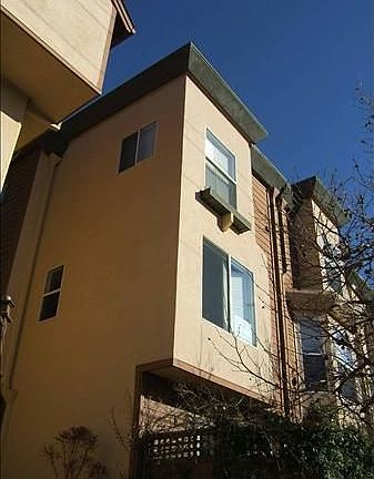 Elegant two bedroom, two and a half bath townhouse in Uptown San Rafael. Private and quiet self-contained community just a few blocks from cafes, restaurants, and the San Rafeal Theater. END UNIT for extra windows and extra light. SOUTH-FACING for all year sun. Built in 2003 on three levels: Main level has a south-facing living room looking out to the Mission San Rafael, and the hills beyond. Hardwood floors, fireplace, large open kitchen in sparkling white with granite counters, a formal dining room, and a half bath. Top level has two sunny bedrooms and two full baths. Crown molding and carpeted. Entry level has a two-car tandem garage, a laundry area and a bonus room with sliding glass doors to a patio. Perfect for an office, exercise room, or play room. This complex of 13 townhouses is unique in San Rafael. There is nothing else that is new, this well built and maintained, sophisticated, and in a perfect location for city living. And , the monthly homeowner's dues are only $188.