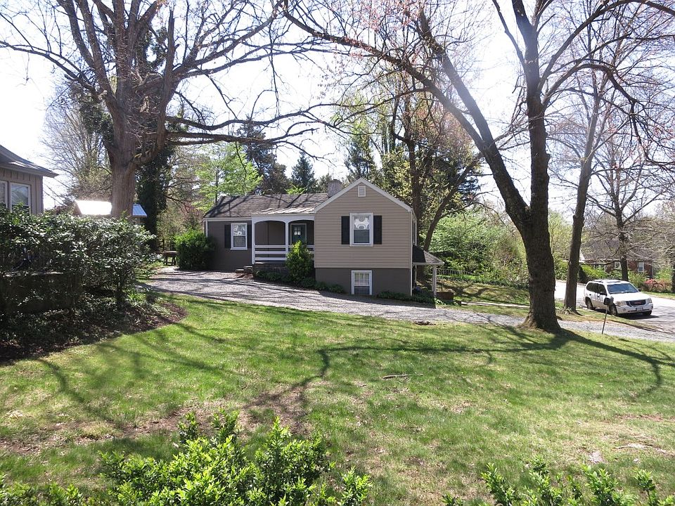 Main level of a home with wonderful out door spaces. Lots of light and rustic charm with modern feel. Large great room with vaulted ceilings and builtins. Bedroom can accommodate a king bed as shown. W/D and Central A/C. All appliances included Located in a quiet walk friendly neighborhood just a short bike ride to UVA, Downtown and bus stop at corner. There is a monthly $25. pp water/sewer fee. Tenant pays all other utilities. Lawn cutting included. Located in the Rugby woods area. Great walking neighborhood within short bike ride to UVA Hospital and Downtown mall. City bus stop at the corner.