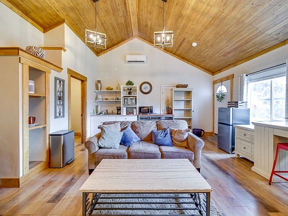 Enjoy the privacy of your own home. This rustic studio features ceiling vaults, creating a spacious ambiance. Fully furnished. Queen bed & side tables. Living/TV Room provides couch, coffee table and a tv cabinet console that doubles as a dresser (drawers and cabinet storage). Office/Dining Nook (enormous desk doubles as a dining table). Kitchenette includes convection oven/air fryer, microwave, and induction cooktop. Dishes (plates & bowls), glasses, silverware, pots, pans and cooking utensils. Driveway parking (one car). Shared Laundry (free). Utilities and wifi split with next door unit, minimizing your monthly costs! Twelve month minimum lease. Lawncare included. No smoking. Application, credit report and background check. Message Amy for details. Available June 8, 2025. $995/mo. 12 month minimum lease. Shared utilities and wifi to keep costs down (approximately $200 month). Lawncare included. No smoking. Background check and credit report required with application. Please message Amy for details. Thank you.