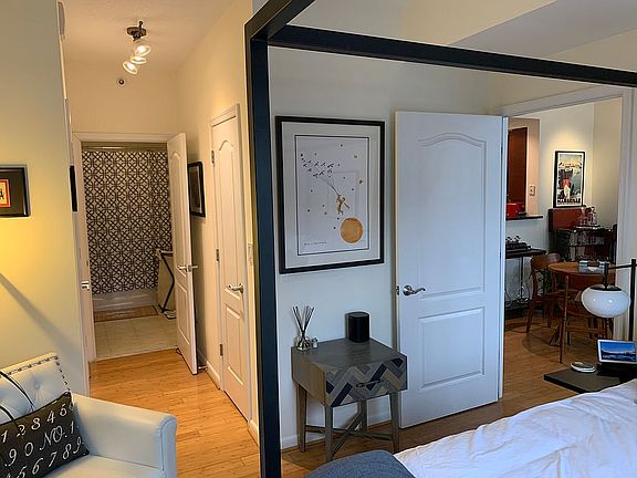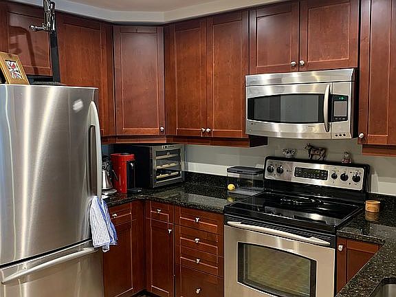 Open House CANCELLED!! Kitchen open to Living room dining, Elevator, Gourmet kitchen with stainless steel appliances and granite counter top. Window Treatments, Wood Floors, dishwasher, garbage disposal, built in microwave, Oven Range - Electric, stainless steel fridge with icemaker. Washer Dryer, Elevator, Carbon Monoxide Detector(s), Main Entrance Lock, Resident Manager, Smoke Detector, Sprinkler System - Indoor, secure garage parking with storage bin.