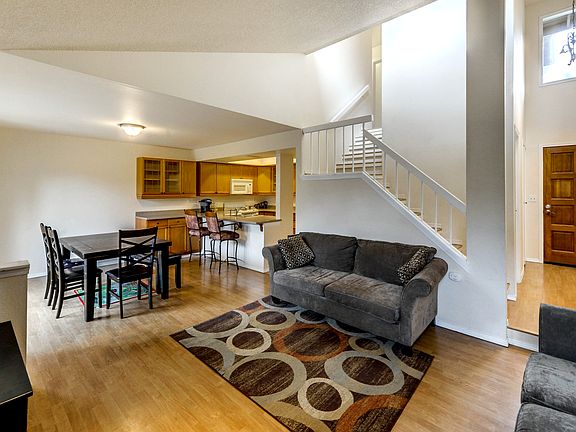 Enjoy this bright & spacious townhome-style condo with open concept living, dining, & kitchen area on the main floor. Upstairs you'll find your master suite with it's very own private balcony and 2 additional bedrooms. This unit boosts skylights, vaulted ceilings, a cozy wood stove, and more. Established community with great amenities such as pool & sport court. Hurry - it won't last long!