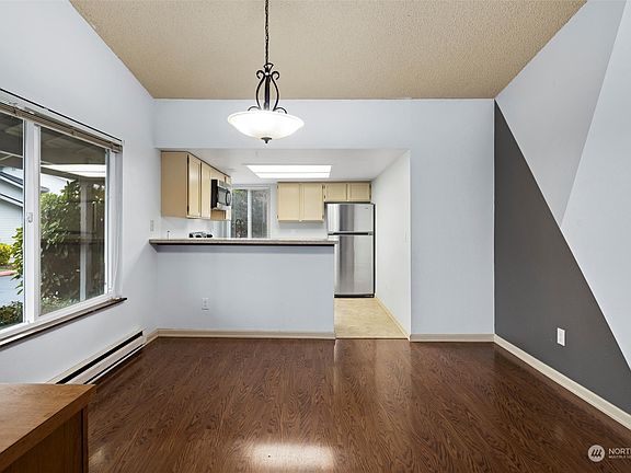 Don't miss this 2-bedroom, 2-bath end-unit condo with 1,063 sq. ft. of comfortable living space! Ready for your updates, features include an accessible entrance, private 1-car garage with ample storage, and a cozy wood-burning fireplace in the living room, which opens to a lovely patio. Enjoy the high ceilings, skylights, and modern stainless steel appliances. The HOA offers fantastic amenities like a clubhouse, sport court, and pool. Recent exterior renovations with no special assessment! Conveniently located in South Everett, near I-5, Hwy 99, Mariner Transit Center (catch the bus down to the light rail!) and all local amenities (Mill Creek Town Center just across the freeway!). Plus, no rental cap—great investment potential!