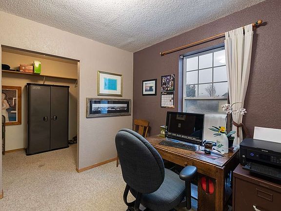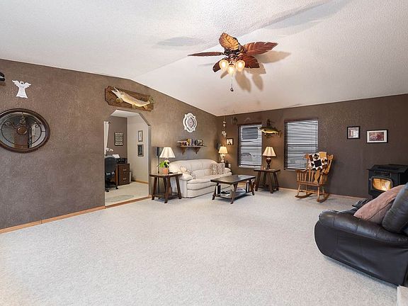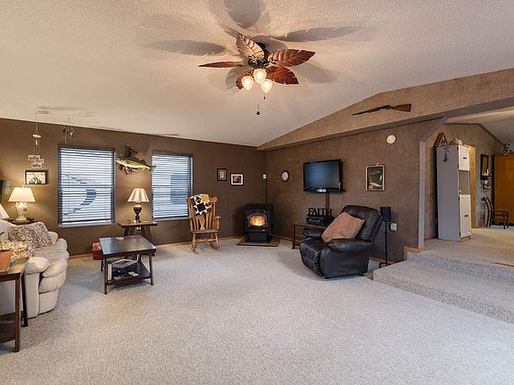 Completely move-in ready 3 bed, 2 bath home sitting at the foot of our beautiful Black Hills! Quality finishes that do not disappoint. Hardwood flooring through kitchen, laundry and entry, beautifully tiled bathroom floors with mosaic detail, updated vanities with stone counters, frameless glass shower, & whirpool tub. A cozy, neutral color pallet throughout the home welcomes you. The huge living room boasts vaulted ceilings, gorgeous French doors to a large meticulously maintained deck, & a thermostat controlled pellet stove. Office space adjoining LR features 2 walk-in closets and could easily be converted to a 4th bedroom! Open concept in the great room with both formal dining space & casual breakfast bar. Single car garage is a completely finished "man cave" that is both heated with pellet stove & has A/C. Fabulous shelving & overhead storage! Beautiful mature trees, shrubbery, & lilacs offer great privacy year round! Home is manufactured with large stick built addition.