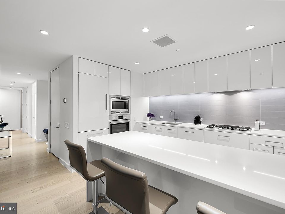 Unit 22 at the West Light is a perfectly proportioned two-bedroom condo that features two large bedrooms, elegant living, and dining spaces with floor to ceiling windows in the backdrop, pristine white kitchen including quartz countertops and Bosch appliances plus an array of luxury building amenities. The white oak floors, high ceilings, and private balcony convey a high end feel while the large en suite bath, walk in closets, and secured garage parking create an effortless lifestyle in the highly walkable West End neighborhood. The West Light is truly one of the very best addresses in Washington DC with 24-hour staff, glamorous resort like roof top pool, gym and 50 foot living green wall in the lobby. The building is located steps to Whole Foods, Equinox, Blue Stone Lane and Michelin starred restaurant Imperfecto.