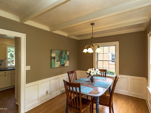 Charming two-story loaded with character close to downtown! Spacious living room with high ceilings and wood-burning fireplace, formal dining with beamed ceilings and wainscoting, updated kitchen cabinets and counters, and three bedrooms and full bath in upper level. Deck overlooks private back yard. Large garage with three-season porch that could be converted to two-stall garage.