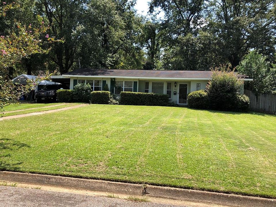 Good Bones! Fun patio with workshop attached to home. Living Room, den, 2 baths. Sits on high side of street, cul de sac street. Fold down seat in shower. American Standard Champion toilets. Temp. set on shower head. shady back yard. Quiet cul-de-sac in an established neighborhood. Custom Laundry cabinets and large custom made linen closet. A walk in closet with custom shoe racks built in. High end sculpted carpet in the living and dining room. Could be a 3 bedroom by converting the den. new ac many updates
