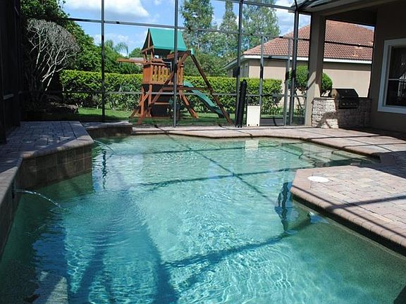 This meticulously maintained 5 bedroom 4 full bath home in the exclusive Windermere and Lake Whitney school district is truly HOME and features a heated resort pool, enormous patio, custom built summer kitchen, and playground perfect for entertaining or relaxing while you watch the games from the pool. The open layout of the downstairs features 18 ft ceilings throughout. The master SPARKLES with the ideal amount of natural light shining through the custom windows and french door leading to the pool. A large Jack and Jill bathroom separates two of the over-sized bedrooms. The kitchen offers extended cabinet space with gorgeous 42" cherry wood cabinets and a large island all overlooking the family room with great views of the pool. All new high end kitchen appliances!!! The upstairs is AMAZING bonus space featuring a large loft with custom built in office that is connected to a full bedroom and bathroom. NEW A/C's!!!