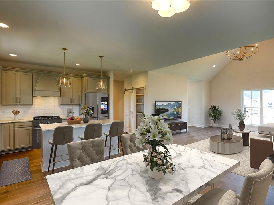 - Cathedral Ceiling(s), Ceiling Fan(s), Chandelier, Closet Light(s), Split Bedroom Floor Plan, Tray Ceiling(s), Vaulted Ceiling(s), Walk-In Closet(s), Walls (Dry Wall), Kitchen/Dining Combo