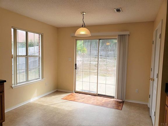 This 1,980 square foot home includes three bedrooms and two bathrooms. When you walk into the property, you are greeted by a spacious living room with high ceilings and a fireplace.The kitchen is complete with refrigerator, stove/oven, disposal, and dishwasher along with plenty of counter and cabinet space. In addition to the eat-in kitchen, there is also a formal dining room. The spacious master bath has a separate shower and a soaking tub in which to relax. The home includes a separate laundry room, right off of the two car garage with automatic opener. The backyard contains a privacy fence and a patio-great for entertaining! Located in the Seaglades Subdivision, this home is just minutes away from NAS and the beautiful beaches of Perdido Key! Sorry, this home is not pet-friendly.