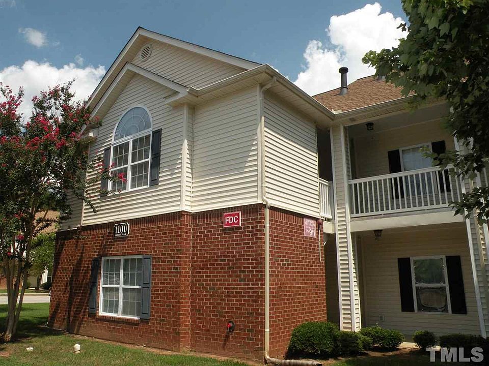 End-unit 2 BR/2 Full BA updated condo on 1st floor! Lots of windows. Brand new flooring and stove! Furnace and water heater replaced in 2015. Kitchen w/ granite counter tops. Family room w/ fireplace. Large bedrooms. WI closets in both BRs. Covered patio. HOA includes water, cable & pool! Walking trails! Super convenient to RTP, RDU, I-40, I-540, & shopping. Please verify schools if important.
