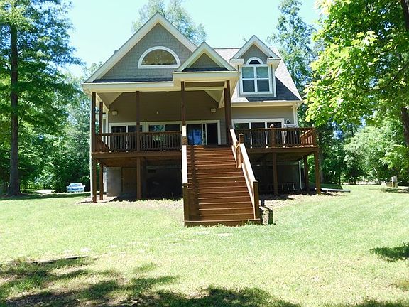 ADORABLE + MOVE IN READY! Retreat from 'the real world' to a true LAKE GETAWAY HOME for the peace, natural beauty+serenity of Beautiful Lake Gaston. Delightful home just waiting for you to enjoy a light, bright, spacious living area; full back decking just an easy walk to a big double boathouse & deep water. So spacious as square footage well utilized. Main level offers open floor plan for kitchen, dining & living w/sliders for great views & access to the large deck (open & covered section) together with two spacious bedrooms & bath (master is waterside w/deck access); laundry cubicle; storage. Upper level provides a spacious second master, guest bedroom (both bedrooms include built-ins), bath and small loft area. Lots of pluses: fans throughout; plenty of storage; whole house generator; Rinnai hot water heater and best of all: HOME IS FULLY FURNISHED, IMMACULATE AND READY TO MOVE IN.