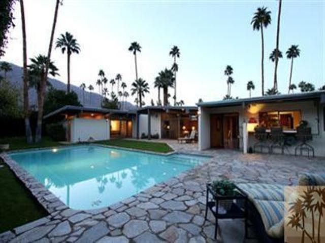 Iconic Wexler design, constructed in 1956 on what we believe to be one of most premier streets in Deepwell. 4 bedrooms and 3 baths with walls of glass that look to the sparkling pool and lush grounds. A great cooks kitchen with indoor BBQ spit for the making of those year round holiday feasts. Car enthusiasts will also love the design of the driveway that can easily park and shield 6 cars leading to the two car garage. Located almost at the end of the cul de sac on over a 1/4 acre this Wexler home has much of it's original footprint without having taken it out to Mars. The seller also states there is some original terrazzo flooring in some areas under the carpet. Come and see this quintessential Palm Springs home.