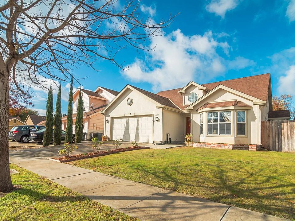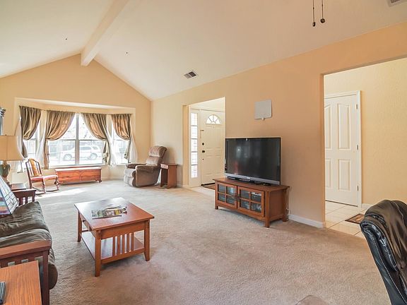 Clean single level home in a quiet neighborhood. Great floor plan with vaulted ceilings and large picture window in the living room/dining room, tile along the entrance hall, kitchen that is open to family room with fireplace and high ceilings and breakfast nook. The hall bathroom has a huge skylight, the laundry room has storage cabinets and the master bedroom has a walk-in closet cathedral ceilings and a sliding glass door out to the backyard. The exterior amenities include a cement patio for entertaining, a grass area, a shed for additional storage, and numerous fruit trees including lemon, lime, orange, apple and Concord grape vines.
