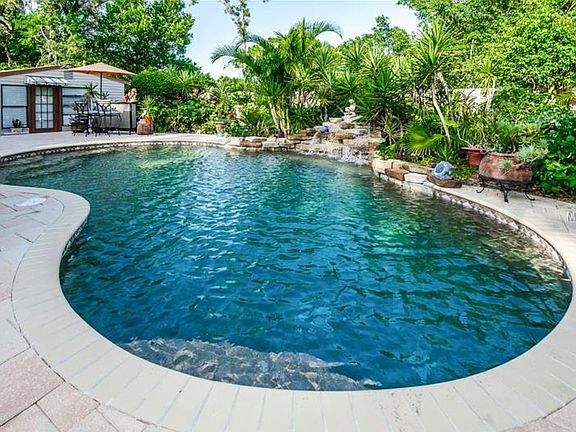 Privacy abounds on this 1/2 acre(mol) lot. Completely updated 3 bedroom,including 2 complete master suites on opposite sides of the house, 3bath home with all the extras. Huge kitchen with large island that is perfect for entertaining. As you enter the home, the large foyer opens to the formal living that looks into the dining and kitchen area. Just a little further in and the open concept family, kitchen dining area provides an entertainers dream space. The master suite is impressive with custom built closets vanity as well as French doors that lead to your private office. The rear yard has the setting of your very own private resort complete with custom salt pool and waterfall all surrounded by pavered decks. The detached pool cabana is great for pool side fun or a perfect for the use as an in-law efficiency. Location is everything as this home sits on one of the highest points in Pinellas county and does not require flood insurance. It is located less than 10min to beaches, quaint down towns, PGA golf resorts and top rated schools. The home has double insulated windows, office off of master suit, Jen Air Stove, LG Refrigerator, fenced yard, and more. A fully updated home located on almost a 1/2 acre lot with no need for flood insurance; this will not last. Buy with confidence; seller including home warranty.