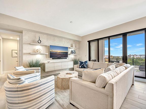 This top floor residence, with 2 br/den and 2.5 baths, creates an inviting contemporary space with an abundance of natural light. The luxurious primary suite offers a king-size bed and large walk-in shower. The guest bedroom has a queen-size bed with ensuite bath. The den features a full-size sleeper sofa and workspace. Entertaining is effortless with the oversized kitchen island and ample seating for family and friends. The living room offers a comfortable couch and 2 side chairs with a large, flat screen TV. Floor to ceiling glass doors lead out to the lanai with 2 chaise lounges and a table for outside dining. Eleven Eleven Central amenities include an infinity pool, fitness center, social room, game room, movie theater, grilling area, fire pits, cabana bar with TVs, electric car charging stations, putting green, life-size chess board, Bocce, and many planned social events throughout the season. The private shuttle will take you to the Gulf beaches or to 5th Avenue and 3rd Street or the world-class shopping and dining is only about 5 blocks away! Live exceptionally in Eleven Eleven Central!