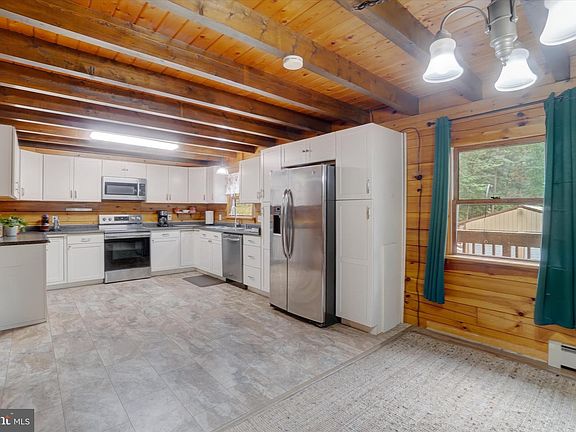 Welcome to 1111 Cherry Orchard Road—a true gem of a cabin tucked away on 2.5 wooded acres in the desirable Deer Park Development. This charming retreat offers two bedrooms and a full bath on the main floor, along with two additional bedrooms and another full bath upstairs. The main level features a spacious living room with a cozy wood stove, an inviting dining area, and a large eat-in kitchen. The lower-level basement provides plenty of storage space. Enjoy the outdoors with community-maintained trails, walking paths, and a fishing pond, all covered by a low HOA fee of just $85 annually. The property also includes a three-bay garage—perfect for vehicles, tools, or recreational toys. All appliances convey, and quick possession is possible. With its peaceful setting and abundant amenities, this property won’t last long. Schedule your showing today before it’s gone!