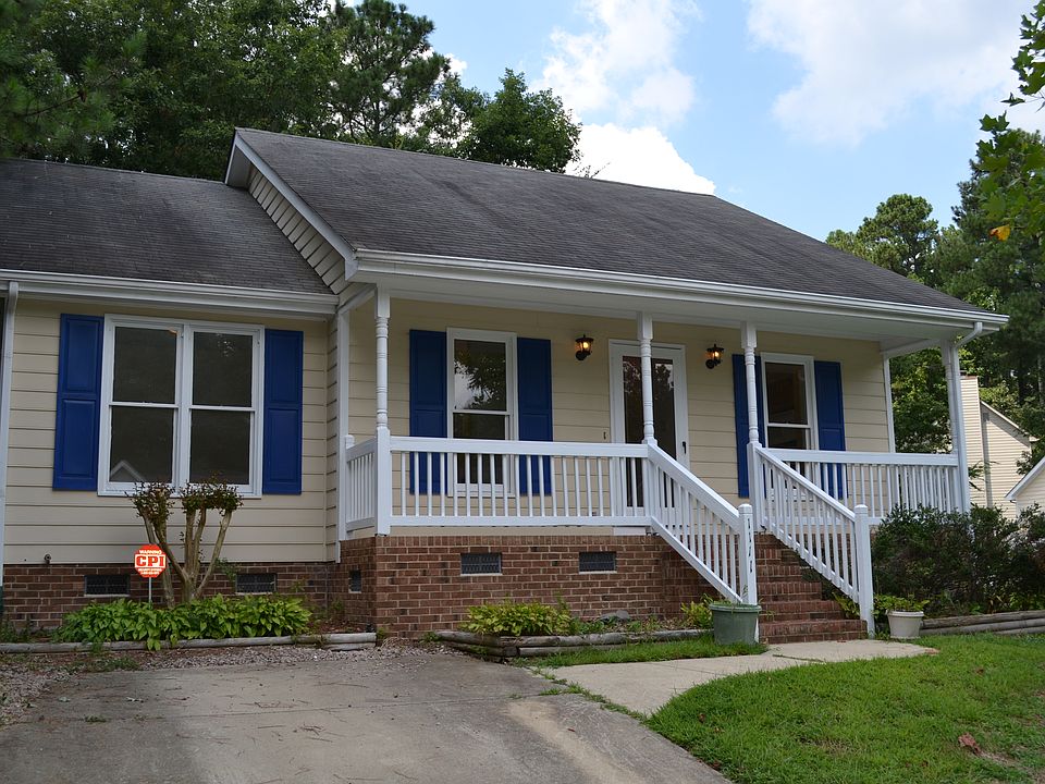 CHARMING, open and bright bungalow convenient to RTP, I85, I40 Raleigh, Durham and Chapel Hill. This clean and cozy home has been freshened up with new paint inside and out, deck repairs and pressure washing the entire exterior. An open layout with vaulted ceilings and sun lights make this home feel bright and big. Large wooded corner lot provides great privacy. Move in ready in a very desirable and quiet Milan Woods neighborhood.