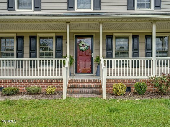 Spacious 4 Bedroom, 3 & 1/2 bath family home in nicely established West Hills subdivision in Historic Tarboro. This home has lots of Classic curb appeal with a large covered front porch for rocking chairs and hanging ferns and even a spot for a swing! Upon entering the freshly painted home is a nice foyer, to the right is the Large family room with engineered hardwoods and Fireplace and to the left is the formal dining room, behind is the eat in kitchen, a nice sized family kitchen with stainless fridge and a gas range. The first floor Primary with its own en suite and walk in closet to the left and over to the right of kitchen is a half bath and a sunroom overlooking the Fenced back yard. Upstairs find all new carpeted 3 nice sized bedrooms, , 1 bedroom with en suite could be 2nd Primary, and 2 more all with large or walk in closets. Outside find a deck, a nice metal pergola, a detached 2 story garage and an above ground pool.