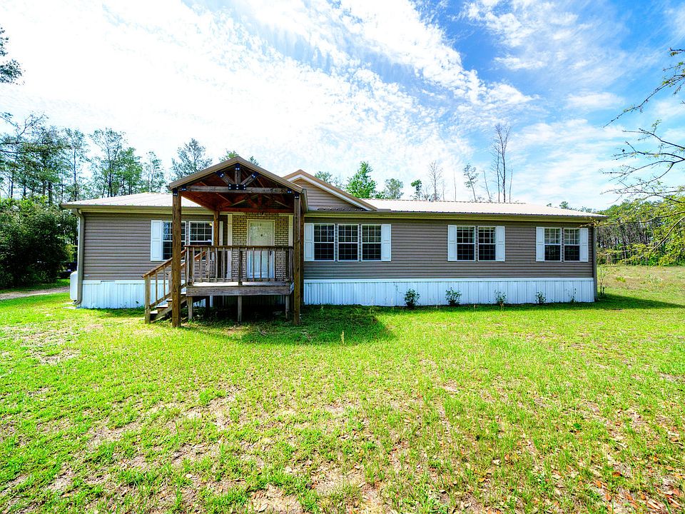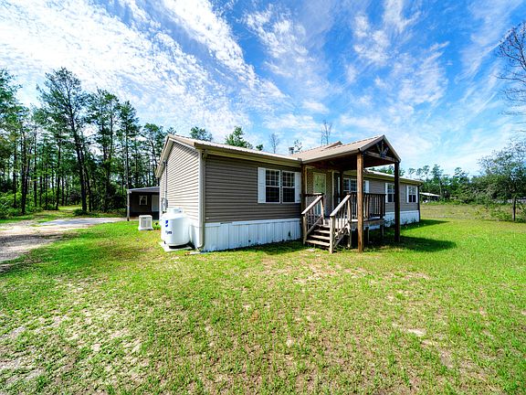 Currently Under Contract, Seller Accepting Back Up Offers. Private home that is not even visible from the road. Three Bedroom, two bath manufactured home with split bedroom plan. The large laundry room has exceptional space with cabinets and a kitchen style sink. Home includes all appliances- Washer, Dryer, upright Freezer, and the usual kitchen in Stainless Steel. Large living room features a wood burning fire place and large windows. Each bedroom has a walk in closet, but the master closet is very large. The master bath features both a garden tub and walk in shower as well as double vanities. The back porch looks out over the tree covered lot. There is a covered carport on asphalt with an adjacent 15x20 workshop. Dimensions should be verified by buyer if important