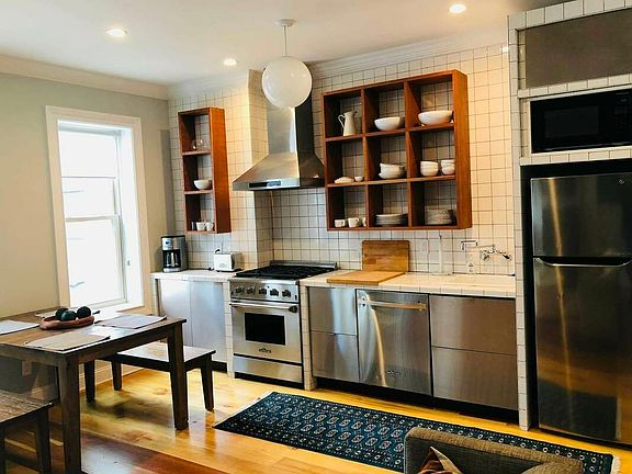 Please see weekend "OH by Appointment only" schedule for showing times. Showings will only be scheduled during these times. Please email me with desired time. I will confirm availability Gut Renovated to create a dream home UPPER LEVEL 1150 square feet of living space.... Central Air Conditioning - Nordic designed enormous open living room, kitchen and dining layout. - Well lighted generous living area for entertaining or just lounging. - Beautiful white kitchen with open shelving above and ample cabinet space below. Stainless appliances commercial stove and dishwasher. - 3 large and comfortable bedrooms - - Plus bonus room - think office, or walk-in closet - Full bath with radiant heated floors, white tiling and tasteful hardware. Come view it just for the floors -this apartment is just spectacular! CAN BE DELIVERED FURNISHED