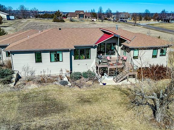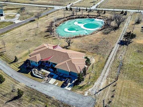 This beautifully crafted 6-year-old custom-built ranch home seamlessly merges countryside living with close city proximity. Located just two miles south of Lawrence on all hard-surface roads, this home sits on a 3-acre corner lot complete with a pond. The expansive 3,016sq/ft main level is designed with accessibility and comfort in mind. Featuring two primary suites, large guest room, office/4th bedroom, three full bathrooms and a versatile sunroom/office, this home is functional and stylish. Thoughtful design includes wide doors, many pocket doors, and no steps throughout the main living areas, with both primary bathrooms featuring zero-entry showers for ease of access. A gas fireplace in the living area adds warmth and ambiance, and numerous windows allow for a plethora of natural light and peaceful views. The kitchen is a dream, showcasing ample Corian counter space, two sink areas, and an intuitive open layout. Thoughtful accessible features include extra lower cabinets with pull-out drawers and an in-cabinet mixer lift. Primary Suite #1 offers a spacious bedroom, sunroom/office, large closet, and a luxurious bathroom with a steam shower. Primary Suite #2 is equally impressive, with its own en-suite bathroom and an expansive closet. Outside, enjoy the large covered front porch with stamped/stained concrete or the comfortable back deck with sunset views overlooking the peaceful pond. Beneath the deck is a concrete patio for additional seasonal options. The full walkout basement, with 9’ ceilings, is a blank canvas awaiting your finishing touches. Already plumbed, wired, and with plans in place to add two bedrooms, bathroom, and wet bar, this space has endless potential. For peace of mind, a 13x7 safe room. Meticulous attention to detail and an ideal location, this property is a rare find that combines luxury, accessibility, rural tranquility, and city amenities like Natural Gas and Midco internet/cable—all just minutes from Lawrence. Schedule your showing today