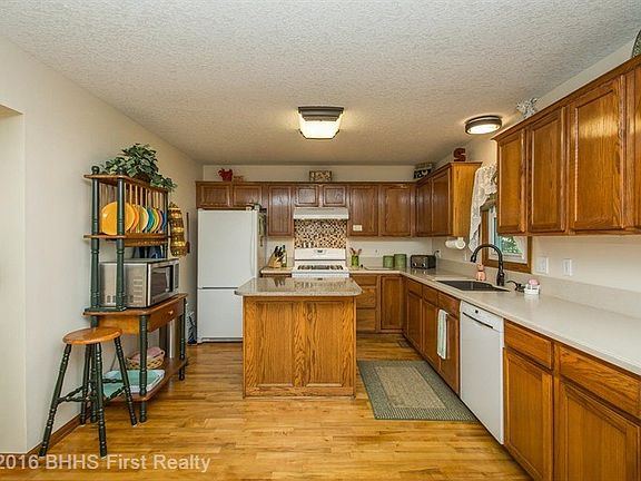 Well loved home with many updates plus a park like setting! 3 BR's up and 1 BR down. Beautiful hardwood floors flow from foyer, hallway, into kit. & liv. room. Updated sunny eat-in kit. with Corian countertops & back splash. Kit. appl. included. Fam. room & kit. overlook an amazing private view of yard & the green space! Liv. room could serve as din. room or office. Convenient 2nd floor laundry. Other updates include new vinyl siding, vinyl windows, deck, & a newer roof. New slider door in kit. w/built-in blinds. LL offers a rec room, BR, & an area for canning! Great storage in addition to attic storage! Enjoy the mature landscaping including, fruit trees, grapes, raspberries, vegetable garden, & perennials! Basketball hoop on cement slab & horseshoe pits in backyard for family fun! If you're looking for a private backyard & a well maintained home, you will love it! Conveniently located & close to city park, pool, school, library &