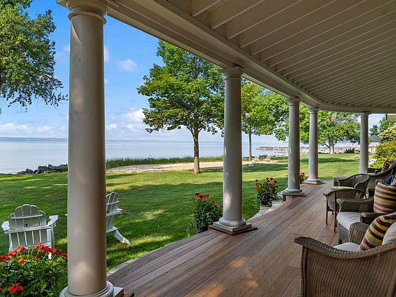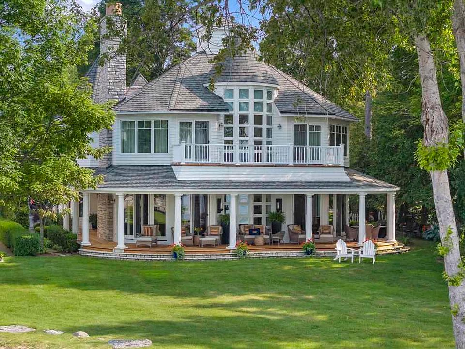 Experience refined waterfront living in this exquisite Harbor Springs home, situated along the shores of Lake Michigan. Blending cottage charm with sophisticated contemporary design, this home captivates with sweeping floor-to-ceiling windows that frame panoramic views of Little Traverse Bay and unforgettable sunsets. The site includes a second buildable lot that offers a fenced backyard that offers both privacy and versatility—ideal for children, pets, or future expansion. Outdoor living is effortless with a covered front porch, brick patio, and direct access to a sandy beach just steps away. Exceptional craftsmanship is showcased throughout the home, from the elegant curved staircase and rich walnut flooring to the custom stone fireplace, granite surfaces, and striking mahogany exterior decking. Located in one of Harbor Springs’ most sought-after areas, residents enjoy access to two private beaches, a swimming pool, and a clubhouse—all just a short bike ride from downtown and close to premier ski resorts and golf courses. This is a rare opportunity to own a truly remarkable property in an unparalleled setting.