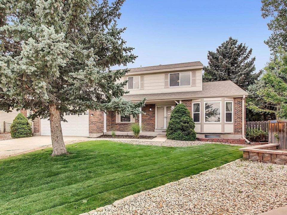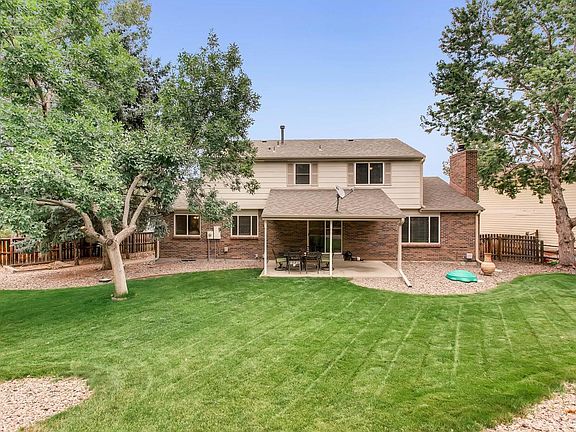 Spacious 2-Story, 5 bedroom, 3 bathroom home, over 1/3 acre on a cul-de-sac in The Highlands in Centennial. New Anderson windows and sliding glass door. No HOA! Main floor - large living room and formal dining room, main floor bedroom #5 could be a study, bathroom, kitchen, eating area and family room. Updated kitchen with slab granite, stainless appliances, double oven, white cabinets, bar, eating area, Brazilian Cherry hardwoods. Large family room, wood burning fireplace. Upstairs - spacious master bedroom, master bathroom, walk-in closet, 3 additional bedrooms, large closets, full bathroom. Enjoy the park-like fenced backyard, covered 336 sq ft concrete patio, large flat yard, terraced areas, garden area. No homes behind, large backyard gate access. New roof and new extra wide gutters. Covered front patio, quiet cul-de-sac with open space at the entrance. Great Littleton Public Schools! Conveniently located in south Metro Denver area near C-470, I-25, Park Meadows, DTC, mountains.