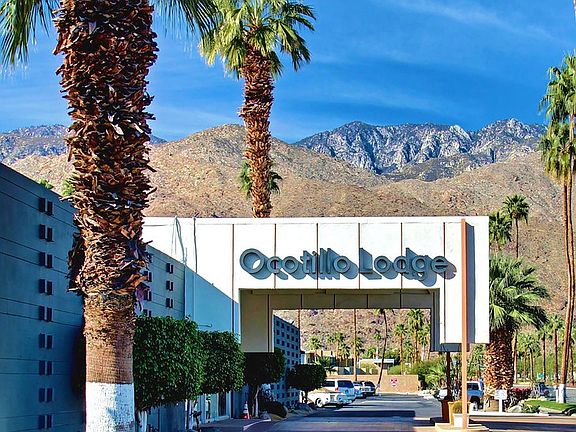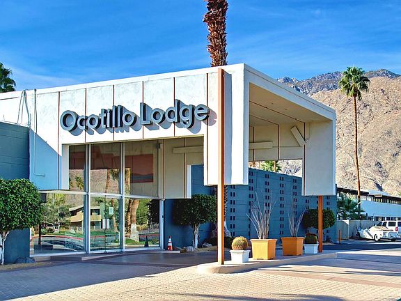 Here is your opportunity to own a Classic Updated Mid-Century condo in the Historic Ocotillo Lodge. Designed by Architect William Krisel, this 1 bed and 1 bath condo features signature walls of glass, large outdoor patio, and enjoys full use of the resort style pool, 2 spas, Bar area, BBQ, Workout room/Gym, Laundry, and parking. The low HOA fee includes utilities! Electric, Water, A/C, and Cable, making this wonderful Turnkey unit an ideal investment, weekend getaway or full time living. Great location near all that downtown and the nearby luxury Hotels, restaurants and shops have to offer. Furniture Available!