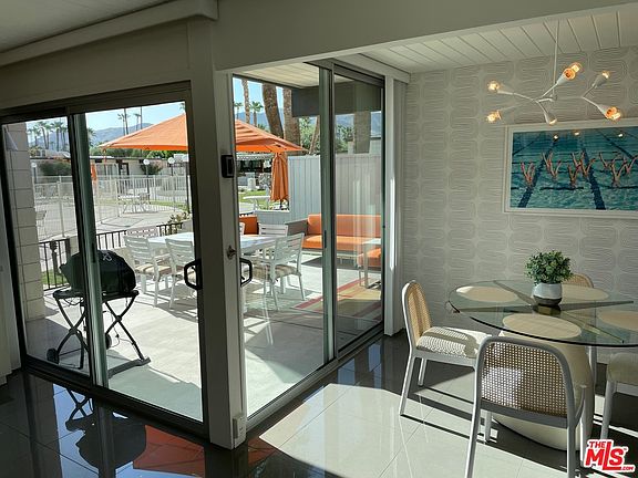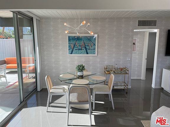 The iconic Ocotillo Lodge was designed by noted architect William Krisel and constructed in 1957 by the Alexander Construction Company. Originally a hotel and converted to condominiums in 1995, the Ocotillo Lodge is in South Palm Springs in the Twin Palms neighborhood close to restaurants and shopping. Unit 380 is a poolside bungalow with many upgrades, custom interior details, and offers the mid-century lifestyle for which Palm Springs is well known. Enjoy resort-style living from your private patio, which is just steps from the glamorous pool. Communal laundry facilities are on the property, and in fact, conveniently located just outside the door to this unit. The historic clubhouse boasts a large common area with pool tables, a gym, community library, and views of the pool and lushly landscaped desert plantings. Mingle with your neighbors while dining outdoors at the Sunshine Terrace, formerly the outdoor bar and lounge area during hotel days. Own a piece of Palm Springs Mid-Century Modern history.