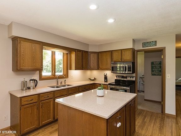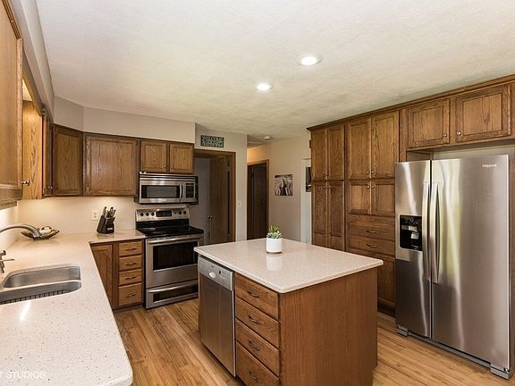 Such an adorable home and so conveniently located to the park, tennis courts, swimming pool and schools. The large kitchen has solid surface quartz countertops, island, brand new refrigerator, under cabinet lighting, stainless steel appliances, Bosch dishwasher and pantry with roll out shelves. Dining area with patio doors walks out to 12 x 10 deck. Situated on a large, corner lot with mature shade trees.