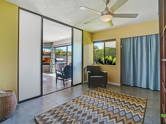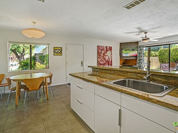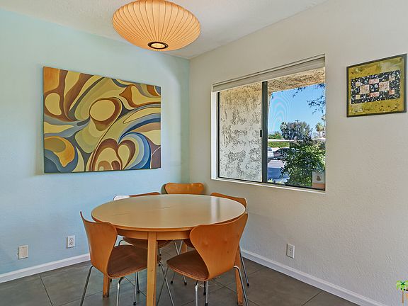 Open the door to this captivating condo and catch your breath! You'll see lots of usable and coherent space of impeccable quality. A clever guest bedroom with a queen Murphy bed that doubles as an office/den, separated from the living room with milk glass sliding tatami doors. Revel in the updated cook's kitchen with deep pan drawers, Bosch dishwasher, granite counters and tiled wall. Step into the serene privacy of a landscaped outdoor patio oasis from either the master or living room. The master bath, an innovative design with Villeroy & Boch tiles, will make you swoon. The condo has a north-south orientation for the best desert sun exposure and natural light. Full-size stacked 3 yr old GE washer/dryer. A/C & water heater less than 6 yrs old. Close to downtown Palm Springs, this condo is designed by famed architect Albert Frey. Amenities include saltwater pool, fitness room & tennis courts. Covered parking with a storage locker. Furniture available outside of escrow.