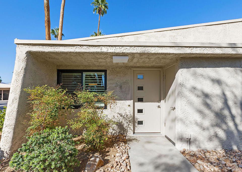 Discover the Desert Lifestyle in this fresh, fully renovated single-story 2 bedroom, 2 bathroom condo at the picturesque Ramona Villas, situated less than a mile from the heart of downtown Palm Springs. Shopping and a variety of restaurants are conveniently located close by.Step inside and experience how the feature finishes create a neutral, spacious and welcoming atmosphere. Timeless white shaker cabinets, striking granite countertops and top-quality appliances grace the kitchen, promising culinary adventures. The contemporary tile showers and the seamless flow of large format tile flooring throughout this home exemplify modern comfort and style. Energy efficient double pane windows and shutters allow you to control the perfect balance of light and privacy. The enclosed, oversized patio is your personal oasis, surrounded by lush greenery and flowering shrubs, offering a serene and tranquil outdoor living experience with the majestic backdrop of mountain views. For your convenience, the assigned covered parking with a storage cabinet is close by, ensuring effortless access to your new home. But it's not just the condo that sets this property apart. Ramona Villas is a meticulously manicured, gated community with an updated, resort-like pool, a fitness center to help you stay active, tennis courts for leisure, and meeting rooms for gatherings. The low HOA fees, strategic location, and the promise of quality finishes make this home truly unique!