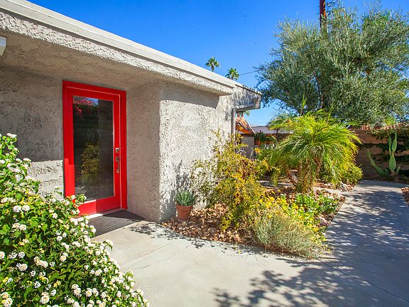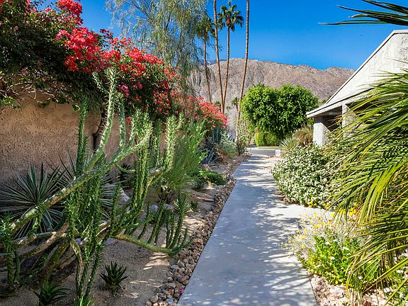 This home is in the desirable south end of Palm Springs. Only 10 of these larger units were built among 106 condos. These are rarely on the market. This home is close to downtown and convenient restaurants, coffee shops, and grocery stores. It has approxirnately 600 square feet of a private walled garden/patio which runs the entire length of the home, which includes a retractable awning. Designer upgrades throughout. New dual pane windows. Upgraded appliances include Bosch dishwasher and LG washer/dryer. This is a single story, private end unit with very close proximity to the carport parking. It's more than a home. It's a Lifestyle!