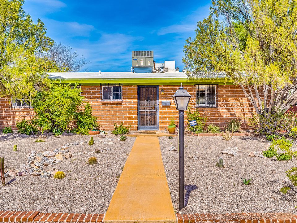 Immaculate Mid-Century Modern gem in prime central historic Tucson!! Located within walking distance of the U of A and Cat-Tran pickup, this 3 bedroom/2 bathroom bungalow features newly stained concrete flooring, open floor-plan, 2018 AC and roof, new paint, and original 1950s kitchen and bathrooms for that desired mid-century charm! The huge backyard hosts a screened-in porch. a fruit bearing orange tree, grassy area, storage, and a 2 car carport with alley access and privacy.Furniture available on a separate bill of sale.
