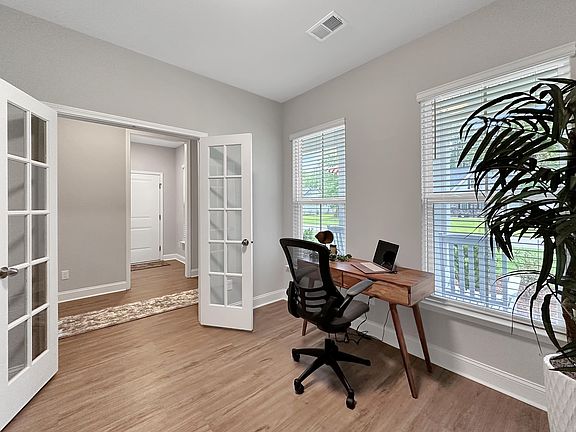 Beautiful Private Estate tucked away in the gated community of Carolina Bay. This Stunning home is only two years old. If you've been looking for privacy and peace and quiet this home is sure to impress. A beautiful front porch welcomes you home. There is a large office on the main floor just to your left, a wide entryway leads into a massive great room. Huge chefs style kitchen, large walk-in pantry and spacious dining area with access to a large covered patio. Enjoy the summer nights grilling out and enjoying time with family and friends. The custom fireplace wall is such a focal point with a custom mantle to hang those Christmas stockings.The grand master suite is truly a retreat after the end of a long day! Your ensuite boasts a soaking tub, walk-in shower, dual vanities and a walk-in closet that has all the space you could ever need. The master is located on the main floor, but there is another master on the second floor as well! The Dual master design makes having overnight guests easy! Upstairs also has its own grand living room/ loft area that would be the perfect playroom,media room or man cave! All the bedrooms are spacious and well laid out, plenty of room for a king size bed or multiple bunk beds! This home truly has it all! Privacy, Space, Storage, 1.2 Acres, Wooded, Custom drive, Huge rooms, Grand Kitchen and so many more upgrades! Schedule your private tour now, and enjoy everything this home has to offer.
