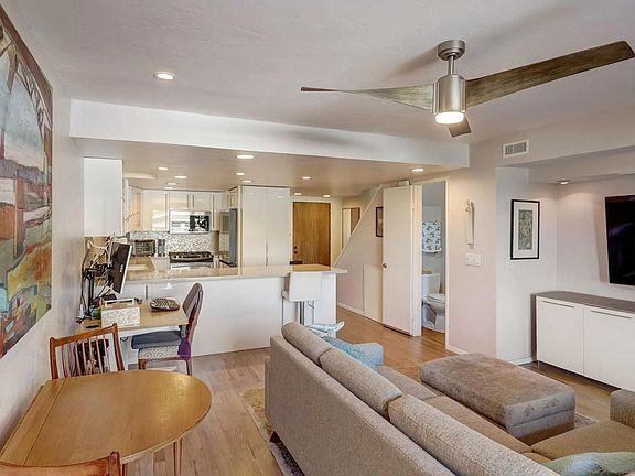 Recently updated two-story townhome located within the highly desirable controlled access complex of Villa Eureka. This amazing residence features an open floorplan with neutral paint and trim, recessed lighting, a cozy gas/wood burning fireplace with stack stone facade, a 3 tier closet, and durable oak plank flooring throughout the main living areas of the home. A beautifully appointed kitchen offering quartz countertops with a custom tile backsplash, stainless steel appliances, and modern cabinetry with breakfast counter seating that opens to the living area.