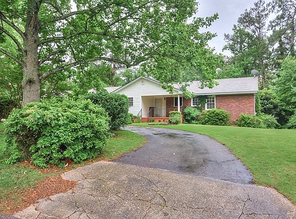 Incredible home for the right buyer! Quirky-cool layout includes finished basement & 2 of 4 bedrooms w/ private outside entrances. Beautiful front exterior features brick & vinyl siding, circular drive, landscaping & covered carport. Roof under 3 yrs old! Porch entry opens into foyer which introduces hardwood floors that continue throughout main floor. At left, spacious kitchen boasts lots of attractive hardwood cabinets, tile floor, tile backsplash & all appliances included! Great room is huge w/ large, rustic fireplace. French doors open to spacious deck overlooking lovely yard dotted w/ established hardwoods. Half bath, family room & rustic office w/ wood walls & built-ins complete main floor plan. Owner BR & BR2 both include en suite full baths, one w/ dual closets & the other w/ large walk-in closet. BR 3 enters from screened porch. Finished basement includes living room w/ brick fireplace, BR 4 w/ private outside entrance, another full bath w/ laundry area, plus tons of storage.