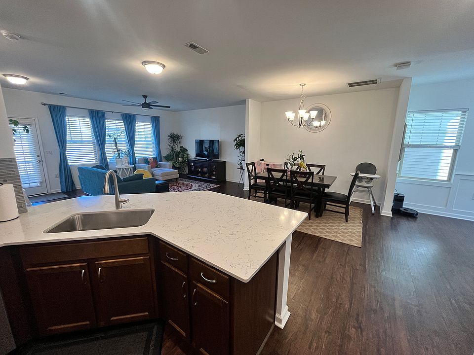 48 hour notice req'd to schedule. DO NOT DISTRURB CURRENT RESIDENT. Luxurious, end-unit, pet-friendly, 2-car garage home with open concept design ready for you to call home. Enter through the open-concept dining and kitchen area with 10-foot ceilings, hardwood floors and recessed lighting throughout. The kitchen boasts SS Appliances (including gas range), huge pantry, quartz countertop peninsula w/ overhang to entertain and tall 42" cabinets. Off the garage is access to your 2-car garage. Continue to the living room w/ wall of windows overlooking the backyard that walks out onto your screened-in patio. Half bath and coat closet on the first floor. Primary bedroom upstairs has wall of windows, very large walk-in closet and gorgeous en-suite bathroom with double vanity, a separate toilet room, and tiled shower Upstairs is rounded out by 2 additional bedrooms and a hallway bath with tub, as well as laundry room. Max 2 pets. Pet Deposit of $300 (1)/$500 (2). Pet Rent of $30 (1)/$50 (2)/m. 2 Car Garage with driveway parking. NO Street parking. Washer/dryer INCLUDED in rent. Renters Insurance Req'd - $500k Application speed and preference given to Zillow Applications. Application Fee of only $60/applicant (link below). Resident Qualification Criteria are available upon request. Overview of criteria: 1) 630+ credit score for one applicant 2) Household monthly income of 3x rent rate ($7,050/m or $84,600/yr) 3) No evictions, foreclosures, bankruptcy, or criminal felonies or misdemeanors in last five (5) years. 12 month lease. Tenant responsible for utilities - electric, water/sewer/trash, and gas. HOA/Owner Responsible for lawn. Renters Insurance Req'd - $500k Max 2 pets. Pet Deposit of $300 (1)/$500 (2). Pet Rent of $30 (1)/$50 (2)/m. 2 Car Garage with driveway parking. NO SMOKING IN THIS HOME. NO Street parking. Washer/dryer INCLUDED in rent. Renters Insurance Req'd - $500k. Application speed and preference given to Zillow Applications. Application Fee of only $60/applicant (contact manager). Resident Qualification Criteria are available upon request. Overview of criteria: 1) 630+ credit score for one applicant 2) Household monthly income of 3x rent rate ($7,050/m or $84,600/yr) 3) No evictions, foreclosures, bankruptcy, or criminal felonies or misdemeanors in last five (5) years.